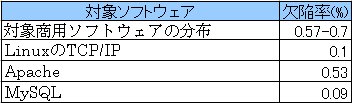 このデータはオープンソースのOSであるLinuxのTCP/IP部分と、アプリケーションサーバー「Apache(アパッチ)」、データベース「MySQL(マイエスキューエル)」を代表的な商用ソフトウェアとの欠陥率を比べたものです。ここで比較対象となった商用ソフトウェアは、著名な某OS、某データベース、某アプリケーションサーバーです。表を見れば、その欠陥率はほぼ同等以下もしくは約6倍以上の欠陥率の差があることがわかります。特にMySQLはサーバー普及率世界No1データベースになっただけはあります。興味がある方は是非原文のほうもご覧ください。 もちろん、すべてのオープンソースの品質が良いとは限りません。しかし、オープンソースの中に、メジャー・ソフトウェアに太刀打ちできる性能・品質のものが出てきたことは間違いありません。