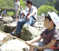 さばいてもらい、河原に下りて早速バーベキューの準備を始める。