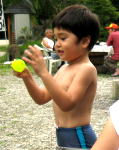 近所の子供達と水遊び。